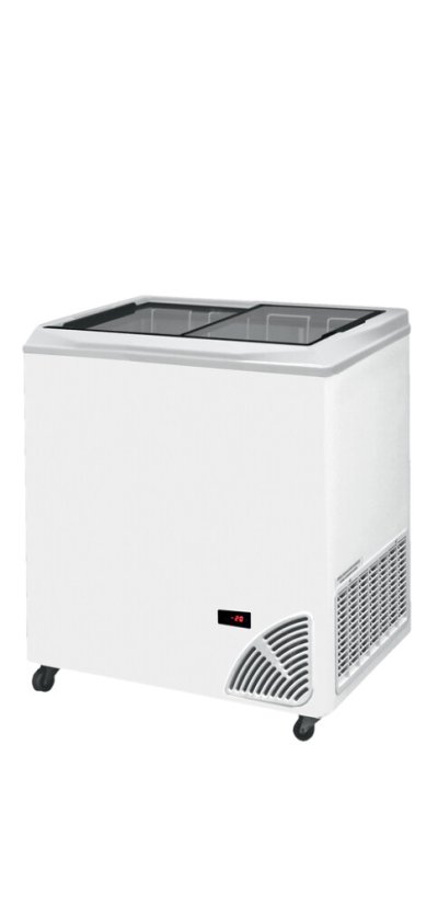 Pultová mraznička prosklené rovné víko