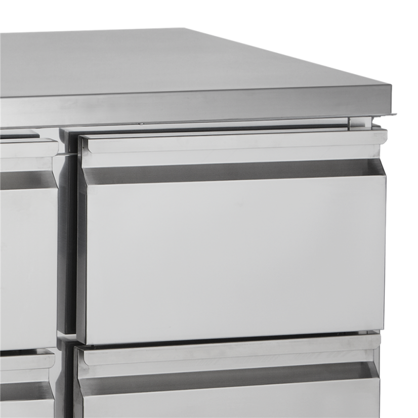 Řada SA chladicích saladet je vyrobena v celonerezovém provedení SS304 s plnými dveřmi a zásuvkami. Vnitřní prostor obsahuje roštovou police GN1/1 (1x ve dveřích). Model je dodáván bez GN. Saladety jsou k dispozici v různých velikostech.